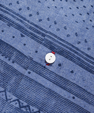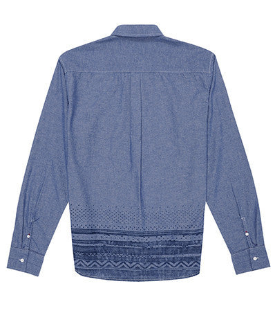 A standout piece from Notch London. The Severn shirt is a casual chambray shirt with an original border print along the hemline. Made from 100% cotton chambray with a printed design.