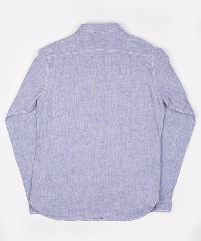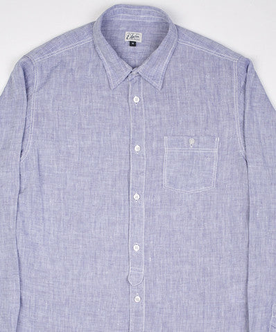The simple shirt from Edwin is constructed from 100% linen, is a regular fit and features a button down chest pocket. This is a classic chambray shirt with minimal branding.