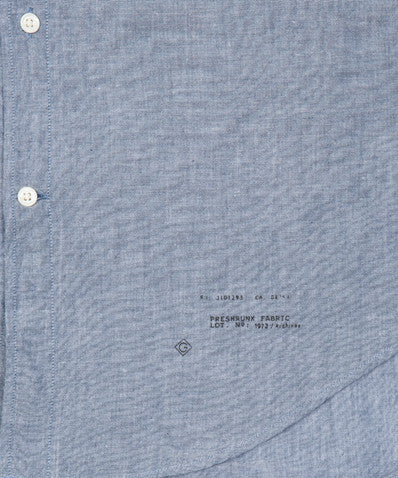 A classic from the Gant archive has been re-imagined by the gang at Gant Rugger. Lightweight cotton chambray button down everyday shirt. Details include a slim fit, button down collar front and back, rear yoke loop, white buttons, left chest patch pocket and a stamp detail above the curved hem.