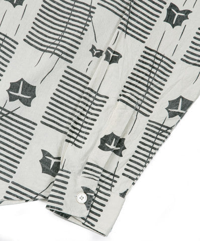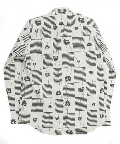 Never one to shy away from what they do best, Our Legacy have produced more great shirting for the AW13 collection. From their ‘Official’ collection, this is the Six Shirt - cut in a classically relaxed style with a curved hem and spread collar. Every shirt in the Six collection is constructed from 100% cotton Portuguese fabric. Featured here, the ‘Tea Leaves’ shirt in cream features an incredible stripe and leaves pattern guaranteed to be a head turner.